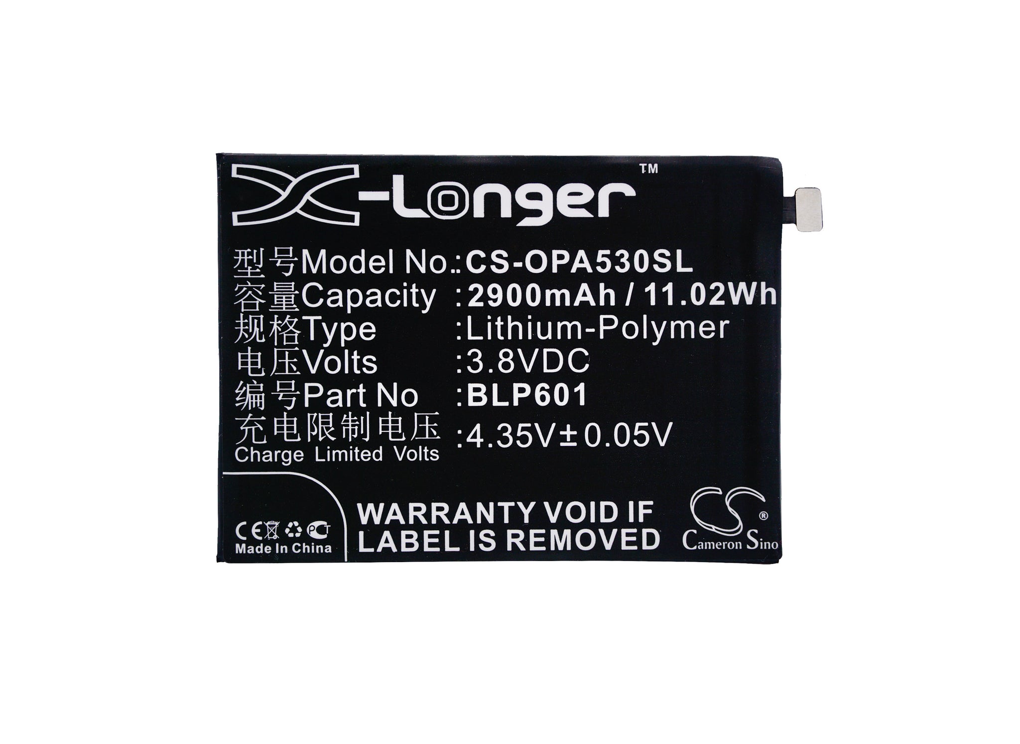 Battery for OPPO A59s BLP601 3.8V Li-Polymer 2900mAh / 11.02Wh