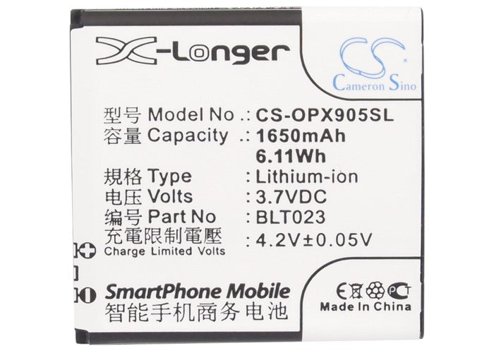 Battery for OPPO X905 BLT023 3.7V Li-ion 1650mAh / 6.11Wh