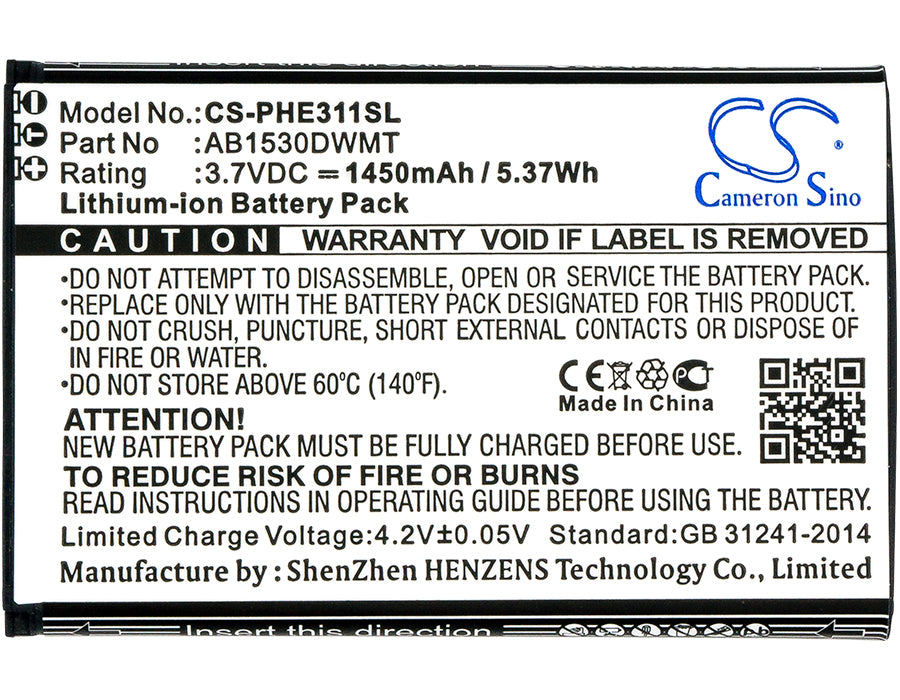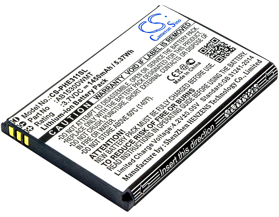 Battery for Philips Xenium E311 AB1530DWMT 3.7V Li-ion 1450mAh / 5.37Wh