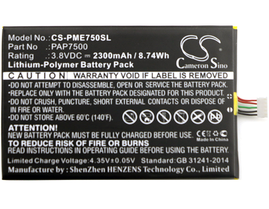 Battery for Prestigio PAP7500 PAP7500 3.8V Li-Polymer 2300mAh / 8.74Wh