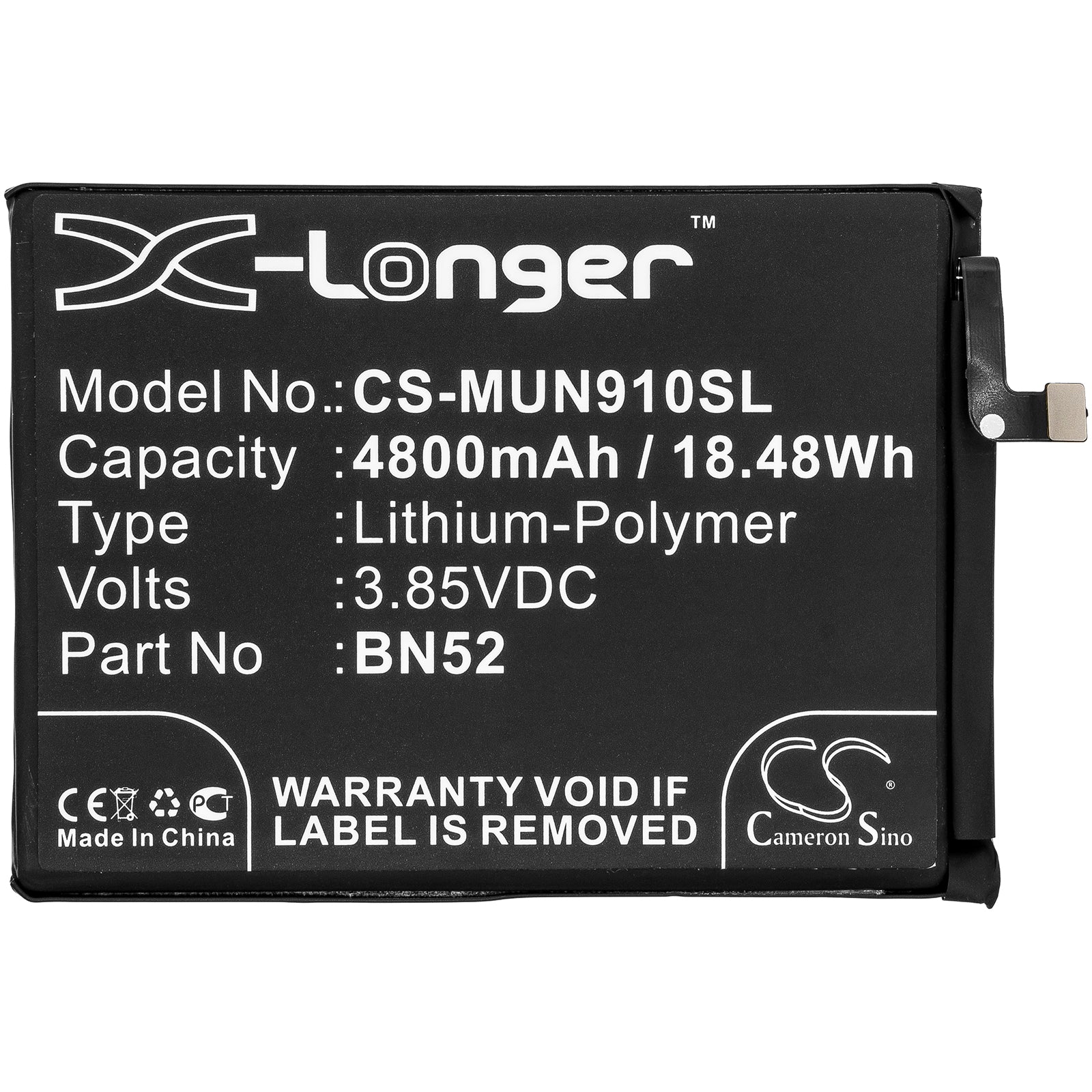 Battery for Redmi M2003J6A1G BN52 3.85V Li-Polymer 4800mAh / 18.48Wh