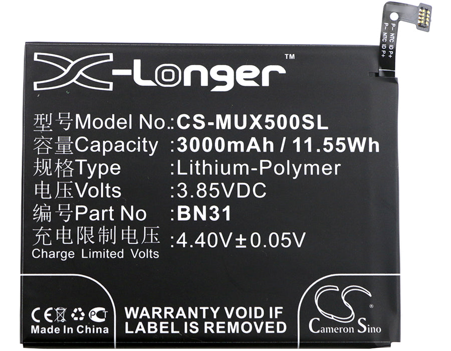 Battery for Redmi Y2 Dual SIM TD-LTE BN31 3.85V Li-Polymer 3000mAh / 11.55Wh