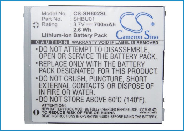 Battery for Sharp S602SH SHBU01 3.7V Li-ion 700mAh