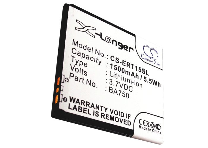 Battery for Sony Ericsson Xperia X12 Acro BA750 3.7V Li-ion 1500mAh / 5.55Wh