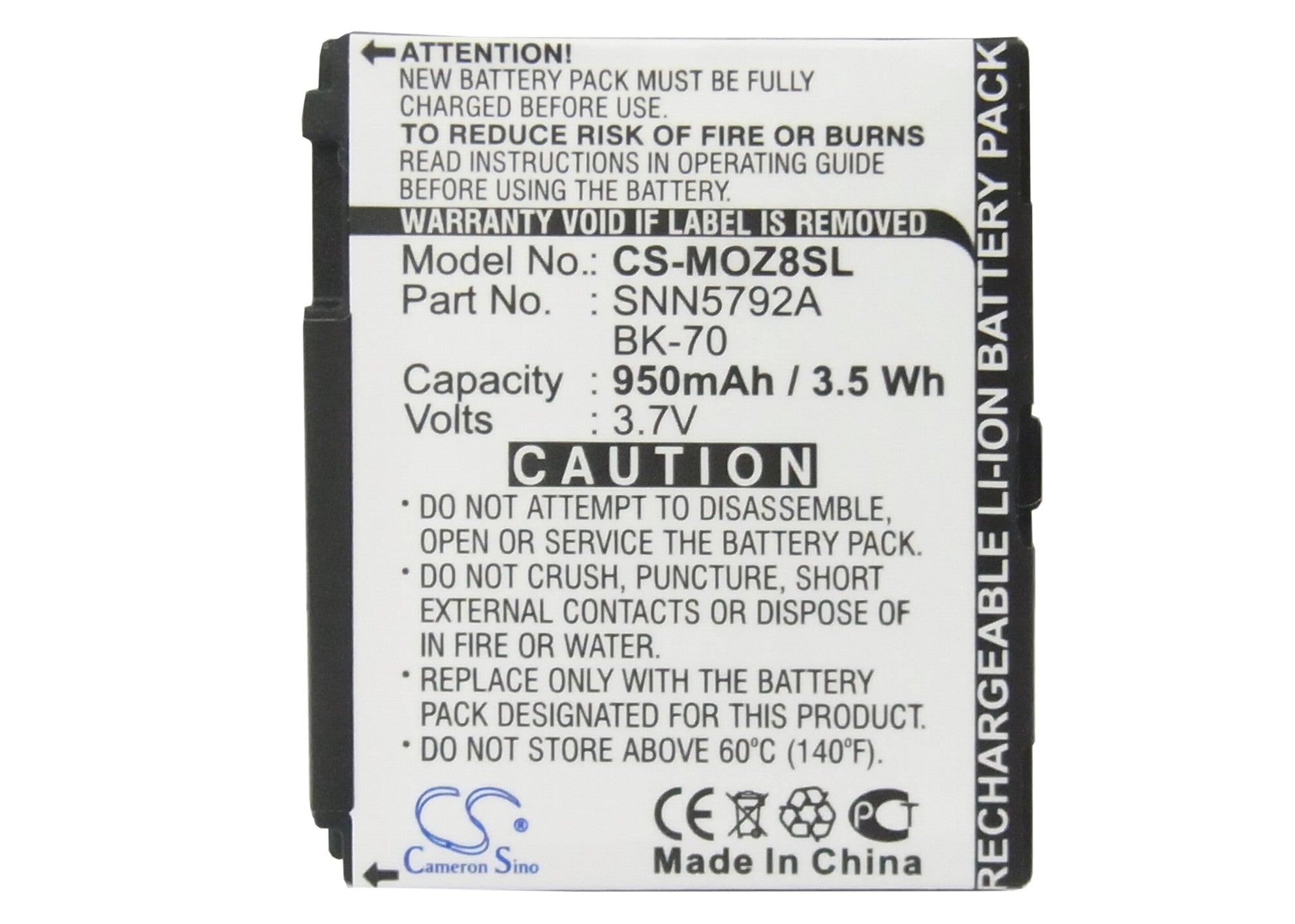 Battery for T-Mobile Sidekick Slide BK70, SNN5792A 3.7V Li-ion 950mAh