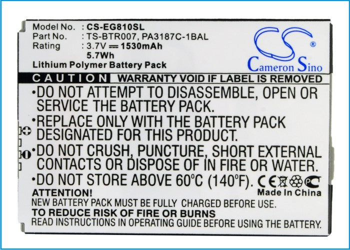 Battery for Toshiba Portege G810 PA3187C-1BAL, TS-BTR007 3.7V Li-Polymer 1530mAh