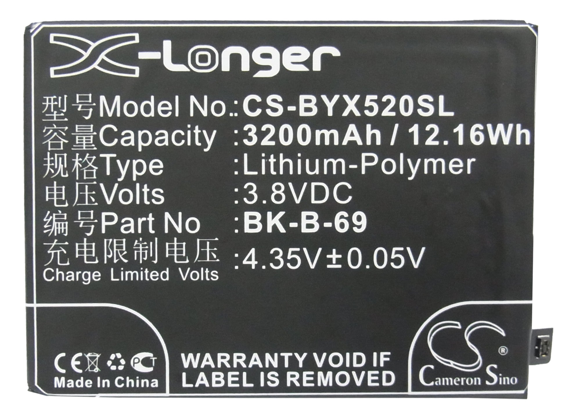 Battery for VIVO Xplay 3S B-69, BK-B-69 3.8V Li-Polymer 3200mAh / 12.16Wh