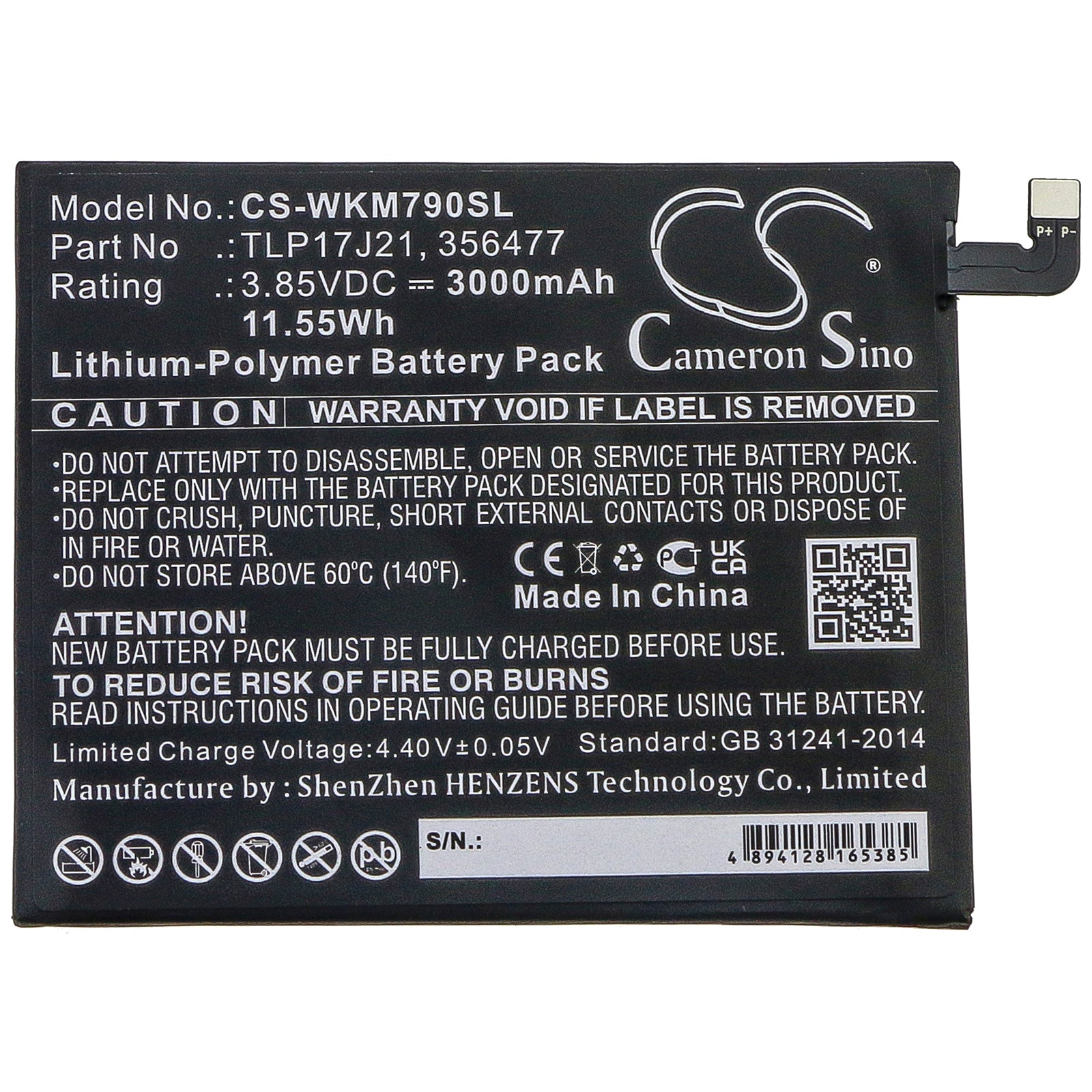 Battery for Wiko M1790 356477, TLP17J21 3.85V Li-Polymer 3000mAh / 11.55Wh