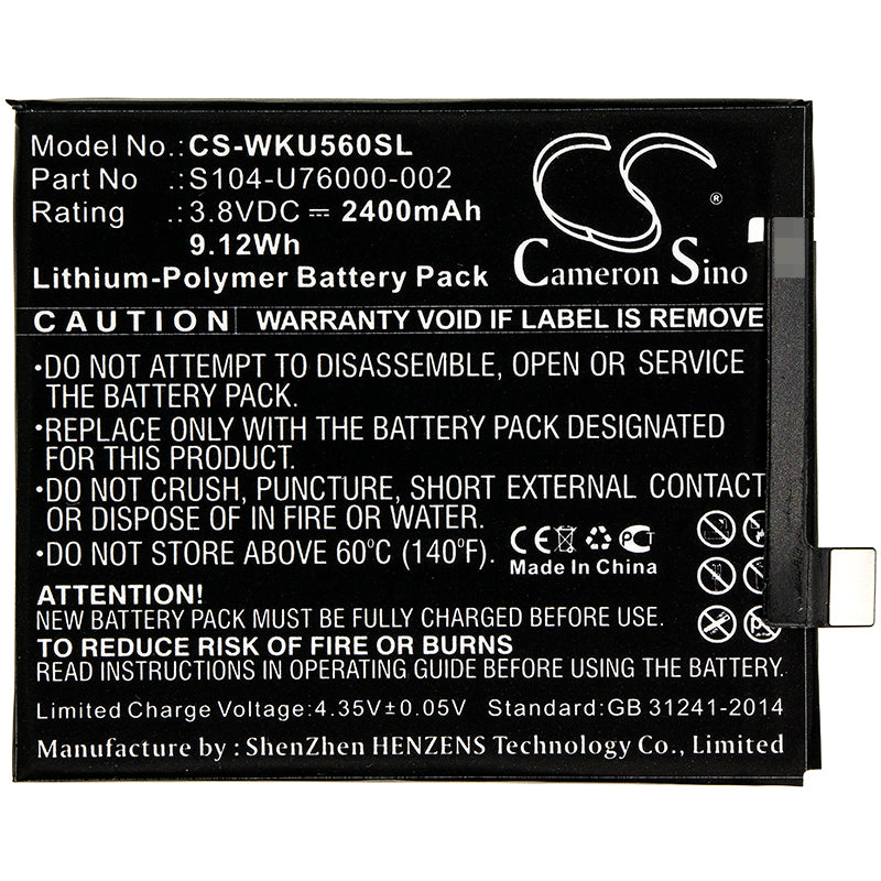 Battery for Wiko U Feel Lite S104-U76000-000, S104-U76000-002 3.8V Li-Polymer 2