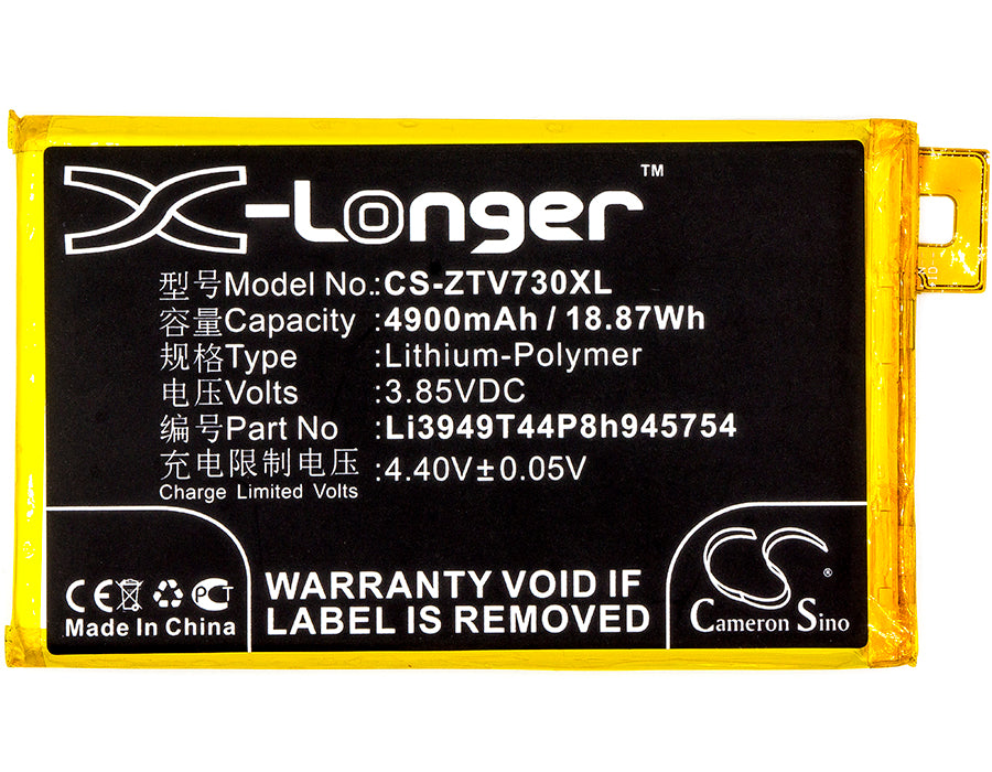 Battery for ZTE Blade A610 Plus Li3949T44P8h945754 3.85V Li-Polymer 4900mAh / 18