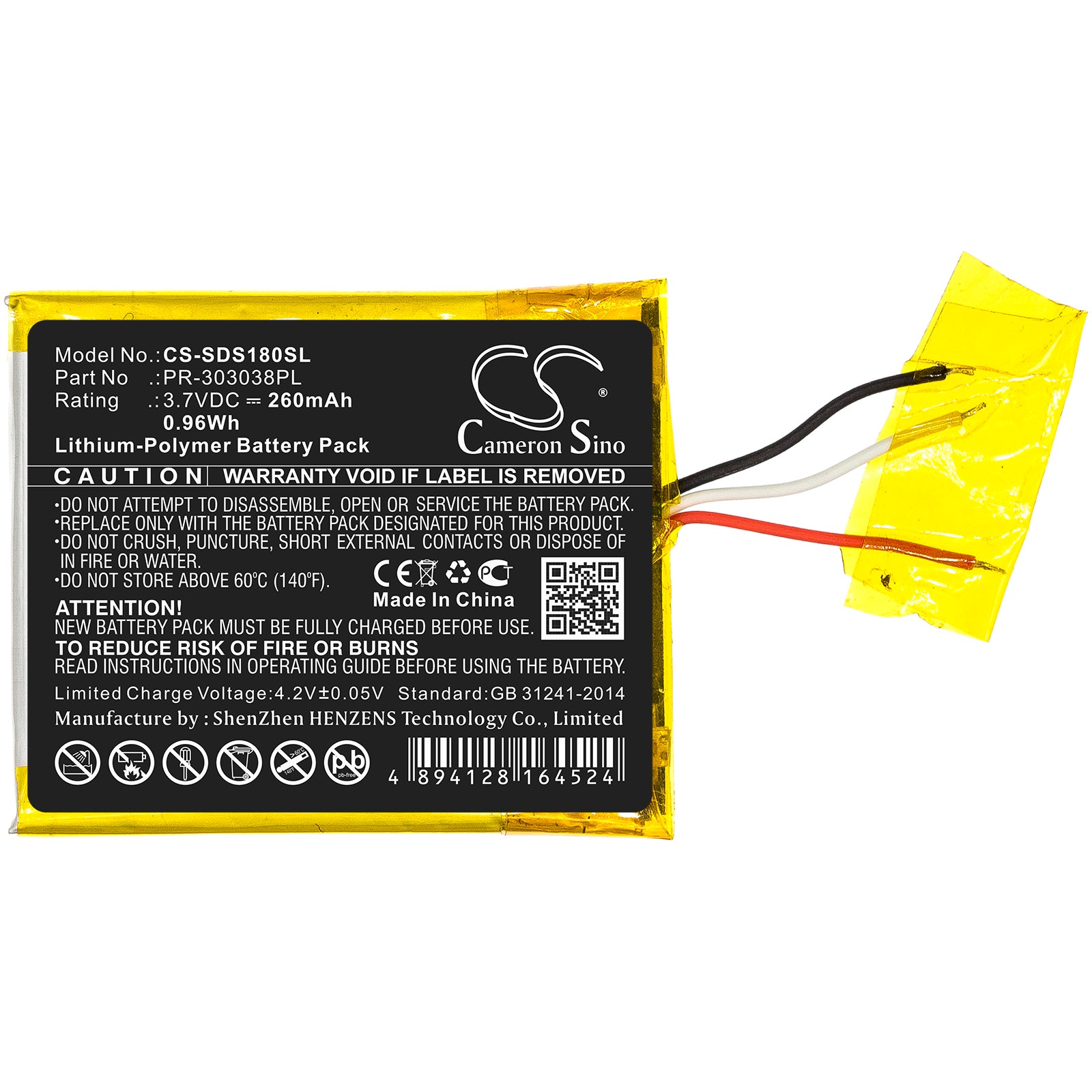 Capacity: 260mAh / 0.96Wh