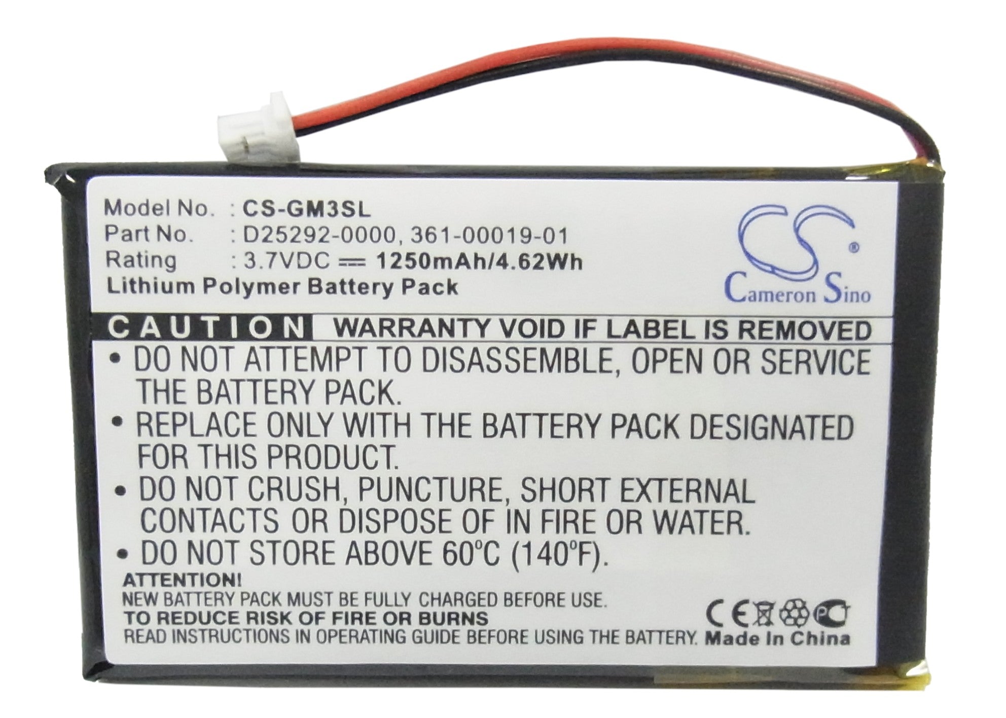 Battery for Garmin iQue M3 361-00019-01, D25292-0000 3.7V Li-Polymer 1250mAh