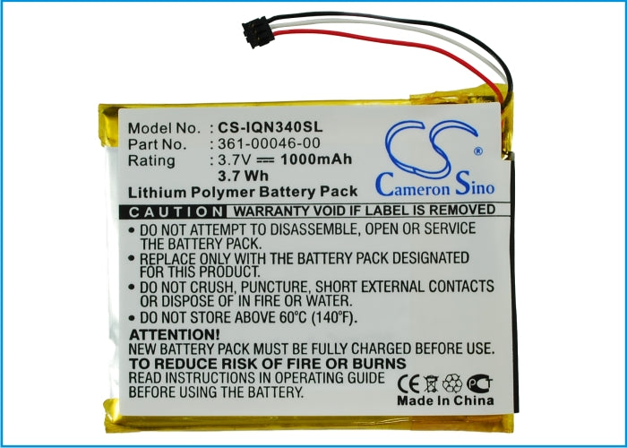 Battery for Garmin Nuvi 3450LM 361-00046-00 3.7V Li-Polymer 1000mAh / 3.70Wh