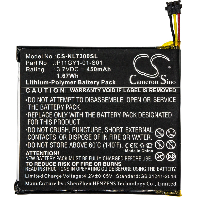 Battery for Nest T200477 3701-0001-01, P11GY1-01-S01 3.7V Li-Polymer 450mAh / 1.