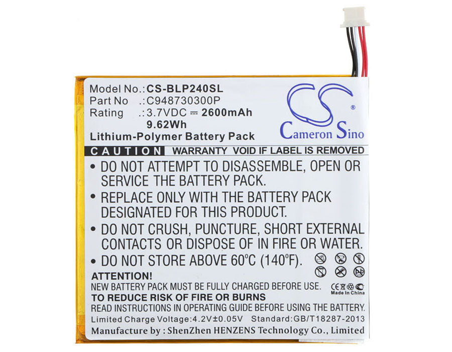 Battery for BLU TouchBook G7 G7 7.0-inch 3G C948730300P 3.7V Li-Polymer 2600mAh