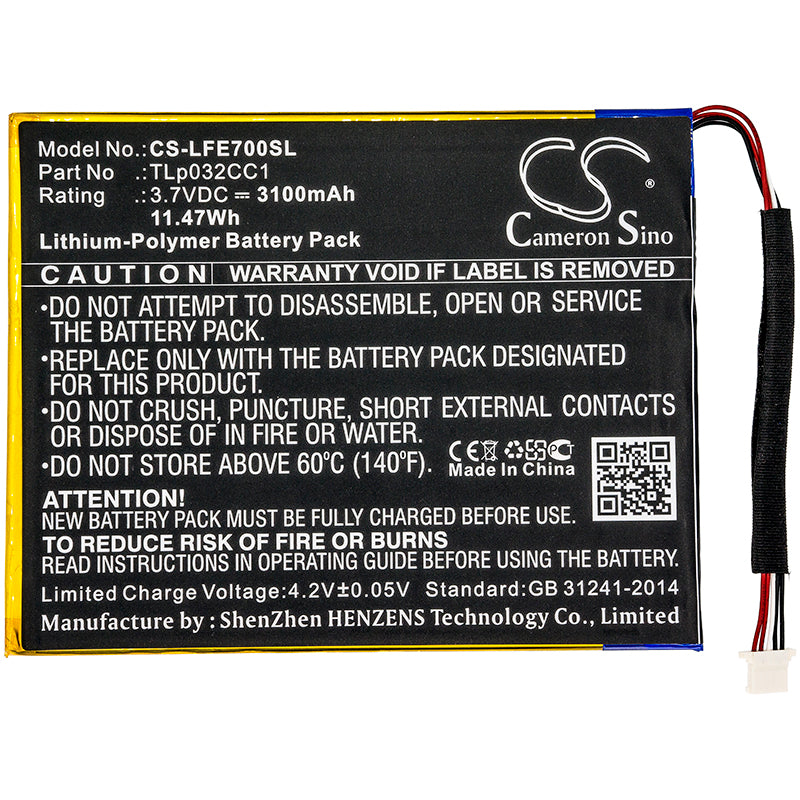 Battery for Leapfrog 31576 TLp032CC1 3.7V Li-Polymer 3100mAh / 11.47Wh