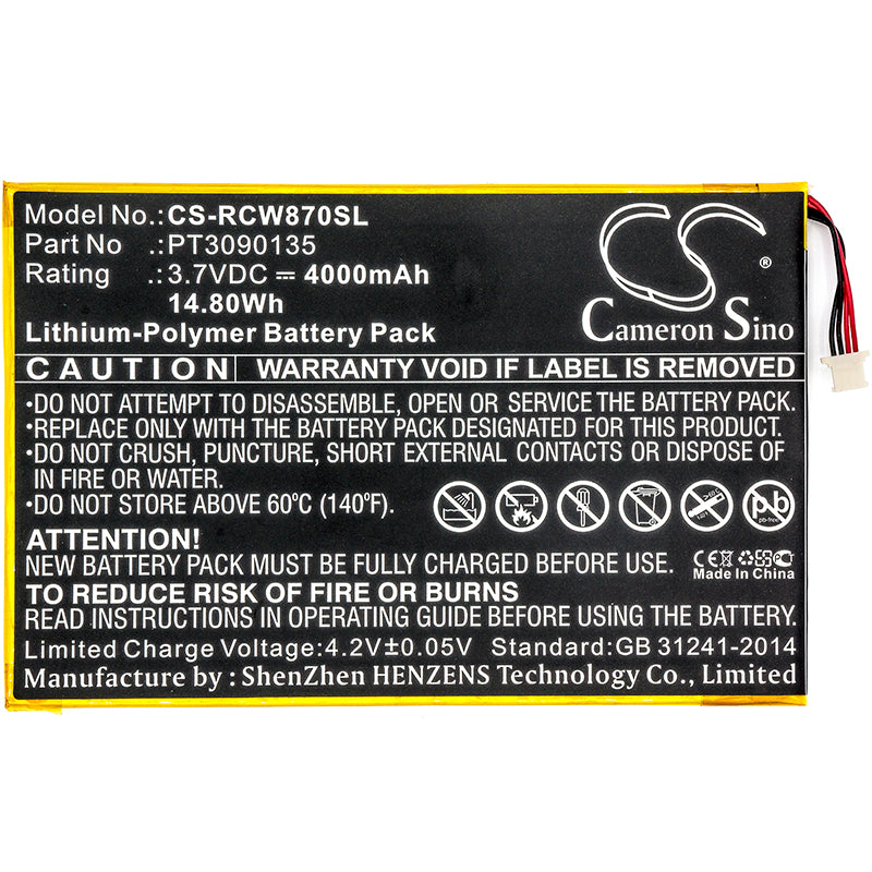 Battery for RCA Cambio PT3090135 3.7V Li-Polymer 4000mAh / 14.80Wh