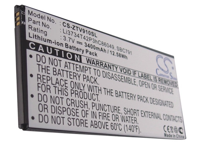 Battery for ZTE V9 Li3734T42P3hC86049, SBC791 3.7V Li-ion 3400mAh / 12.58Wh