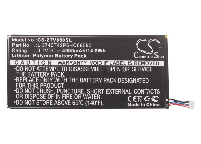 Battery for ZTE V9s LI3740T42P5HC66050 3.7V Li-Polymer 4000mAh / 14.80Wh