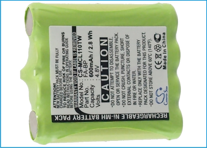 Battery for Cobra PR350 FA-BP, FA-CK, GA-CM, GA-CR, GA-CT 4.8V Ni-MH 600mAh / 2.