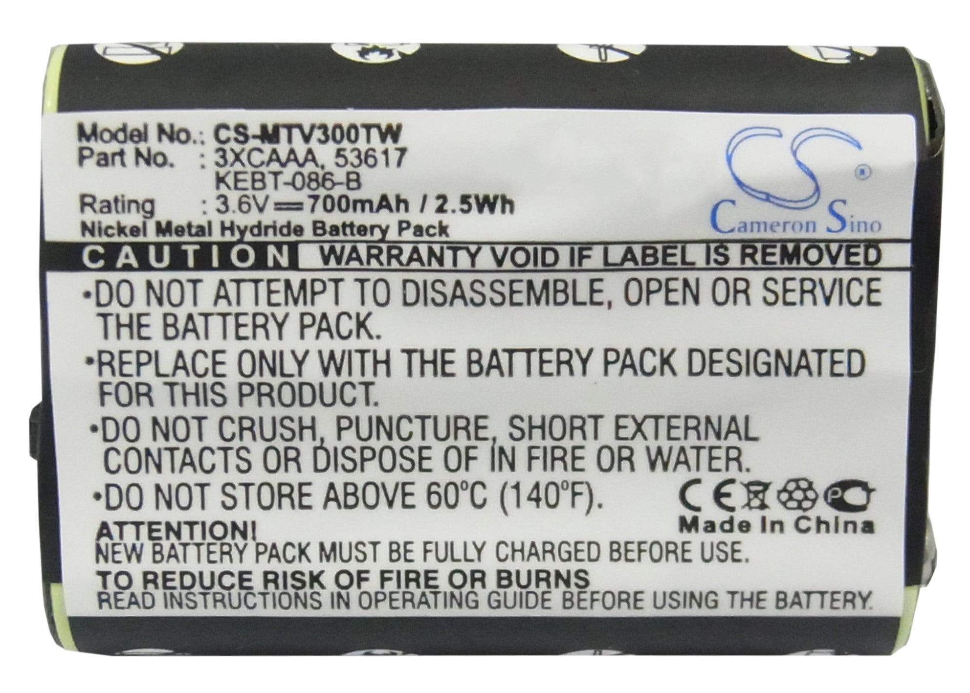 Battery for Motorola FV700 3XCAAA, 53617, KEBT-086-B 3.6V Ni-MH 700mAh / 2.52Wh