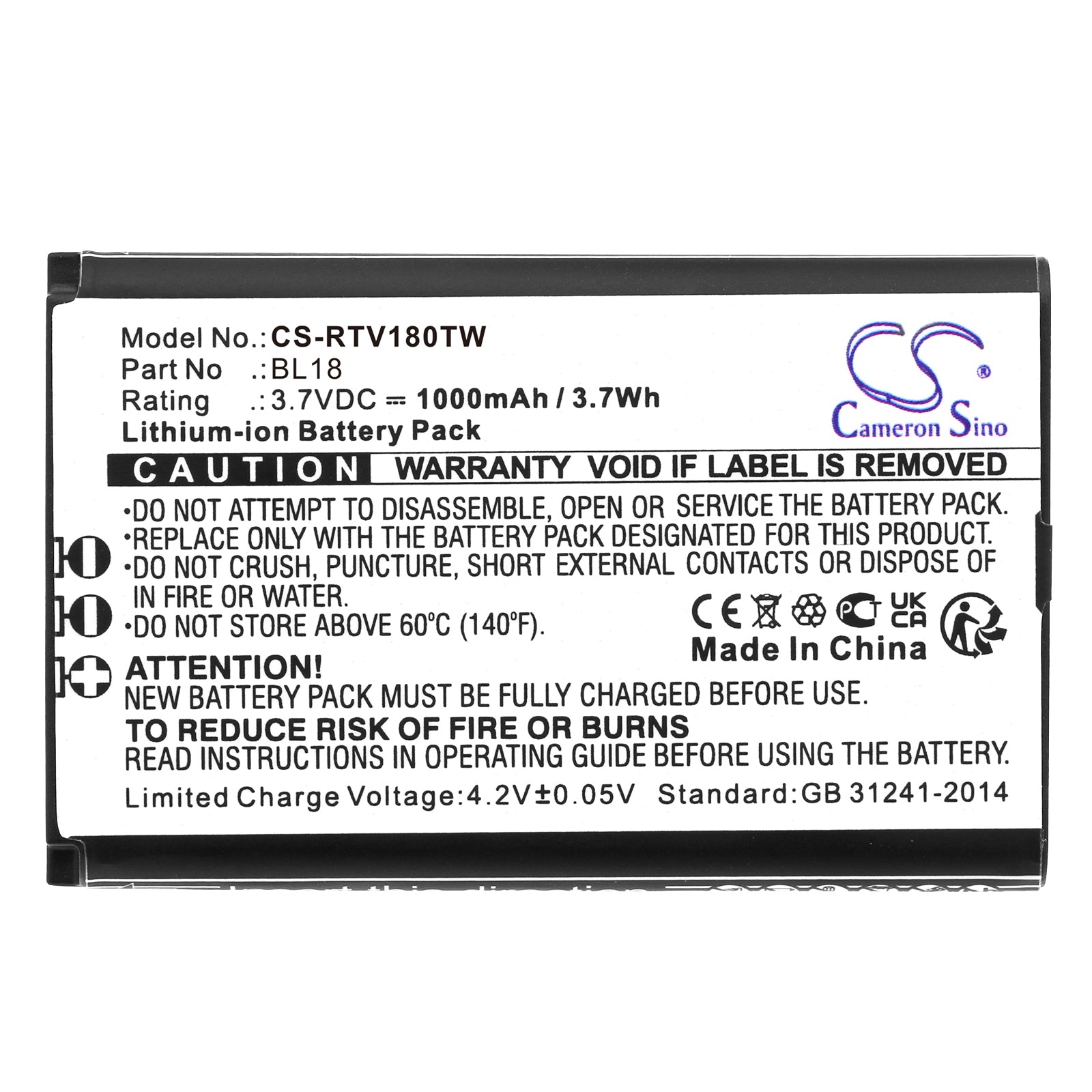 Battery for Retevis RT18 BL18 3.7V Li-ion 1000mAh / 3.70Wh