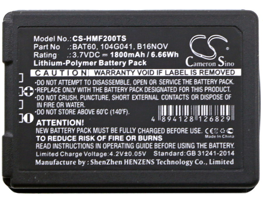 Battery for Clear-Com FreeSpeak II 104G041, 16NOV, BAT60 3.7V Li-Polymer 1800mAh