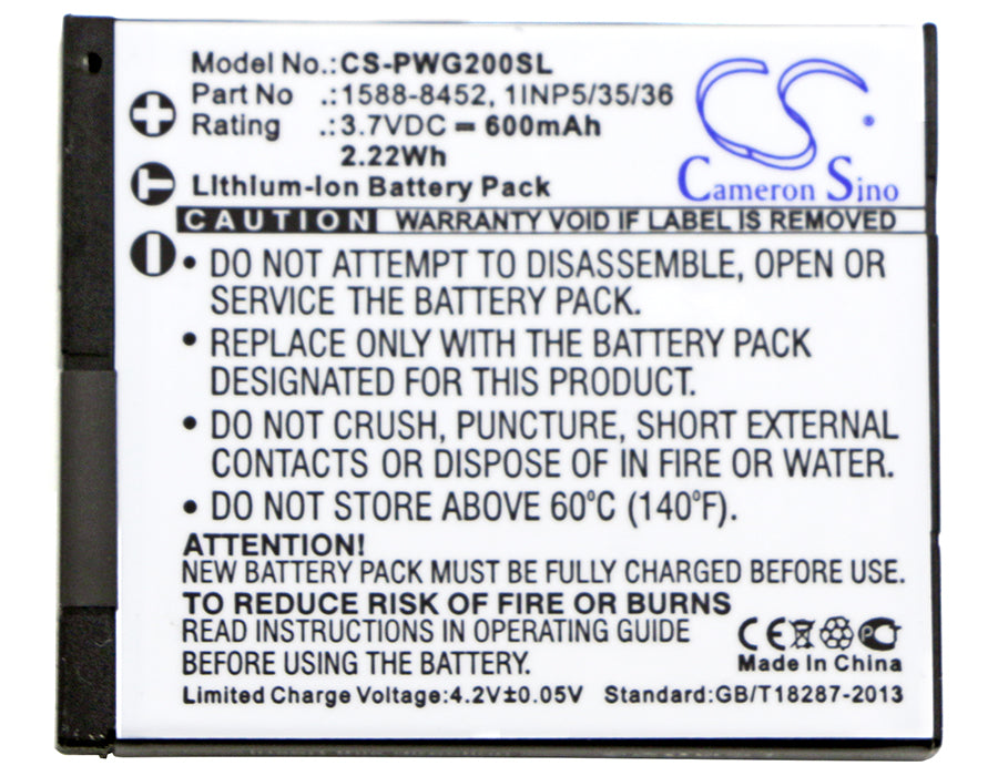 Battery for Panasonic RP-WFG20 1588-8452, 1INP5/35/36 3.7V Li-ion 600mAh / 2.22W