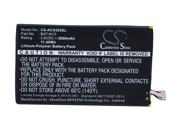 Battery for Acer S520 1CP415793L1 1S1P, BAT-M10, BAT-M10(1ICP5/58/94), KT.0010S.