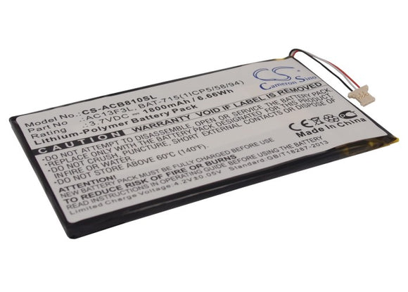 Battery for Acer Tab B1 BAT-715(1ICP5/58/94), KT.0010G.002D 3.7V Li-Polymer 1800