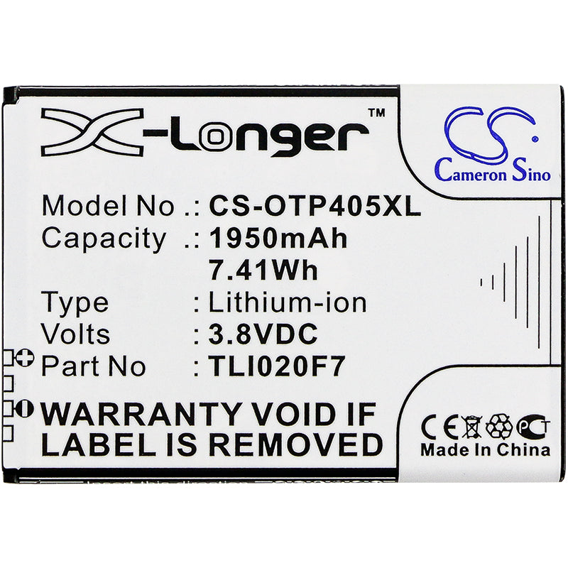 Battery for Alcatel OT-5045T TLI020F7 3.8V Li-ion 1950mAh / 7.41Wh