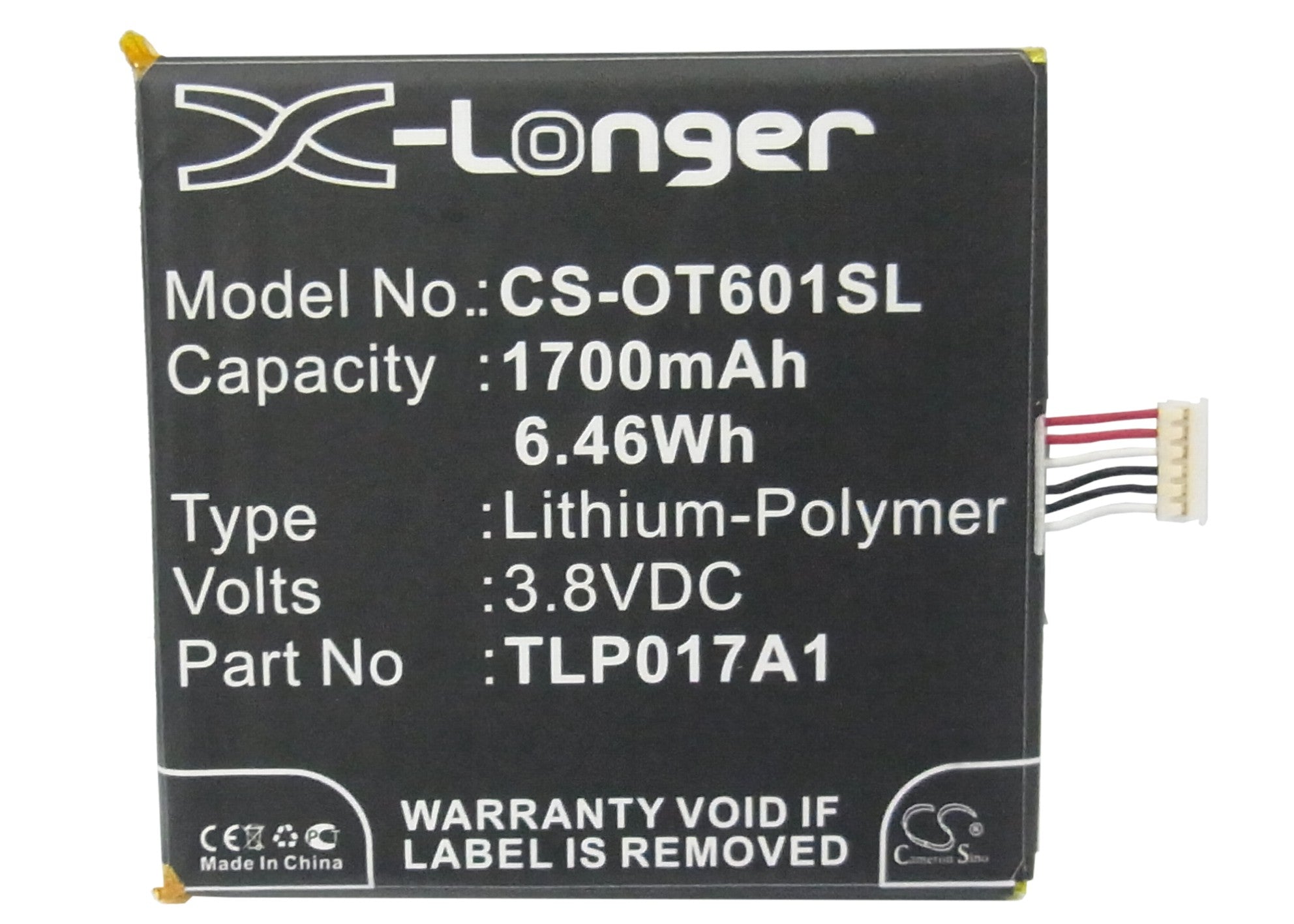 Battery for Alcatel OT-6015A CAC1700001C, TLP017A1, TLP017A2 3.8V Li-Polymer 170