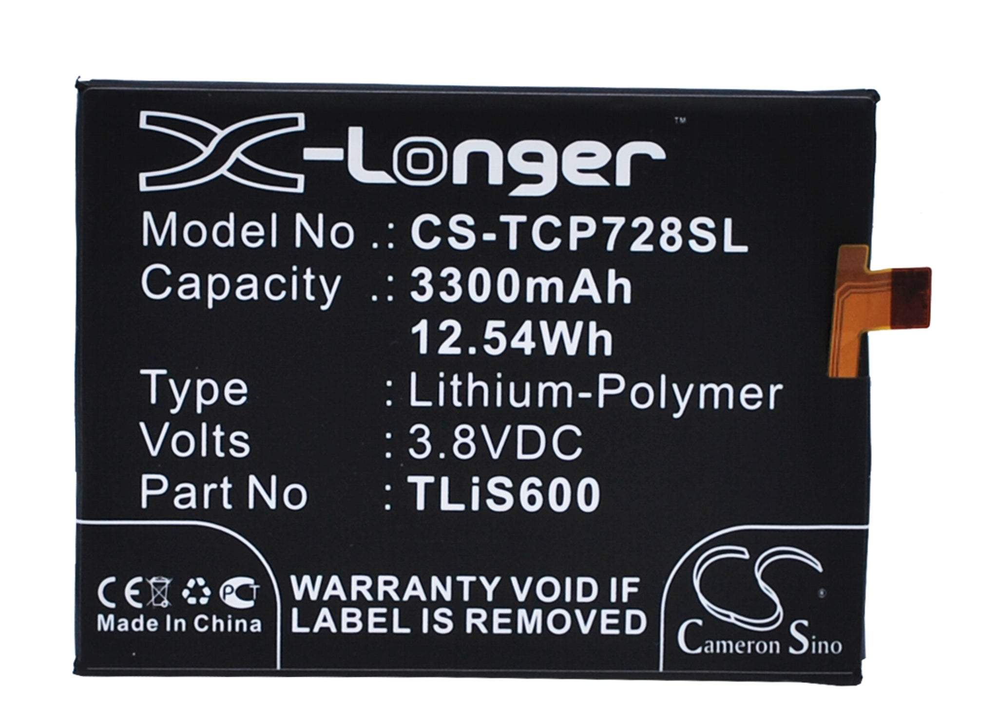 Battery for Alcatel OT-7054T TLiS600 3.8V Li-Polymer 3300mAh / 12.54Wh