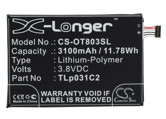 Battery for Alcatel OT-8030B TLP031C1, TLp031C2 3.8V Li-Polymer 3100mAh / 11.78W