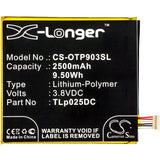 Battery for Alcatel OT-8050D TLp025D2, TLp025DC 3.8V Li-Polymer 2500mAh / 9.50Wh