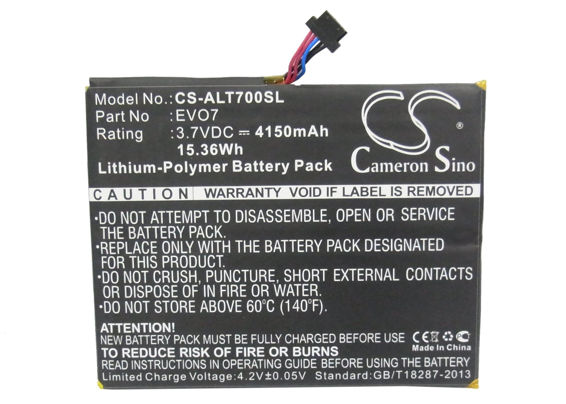Battery for Alcatel OT-T70 CAB4160000C1, EVO7 3.7V Li-Polymer 4150mAh / 15.36Wh