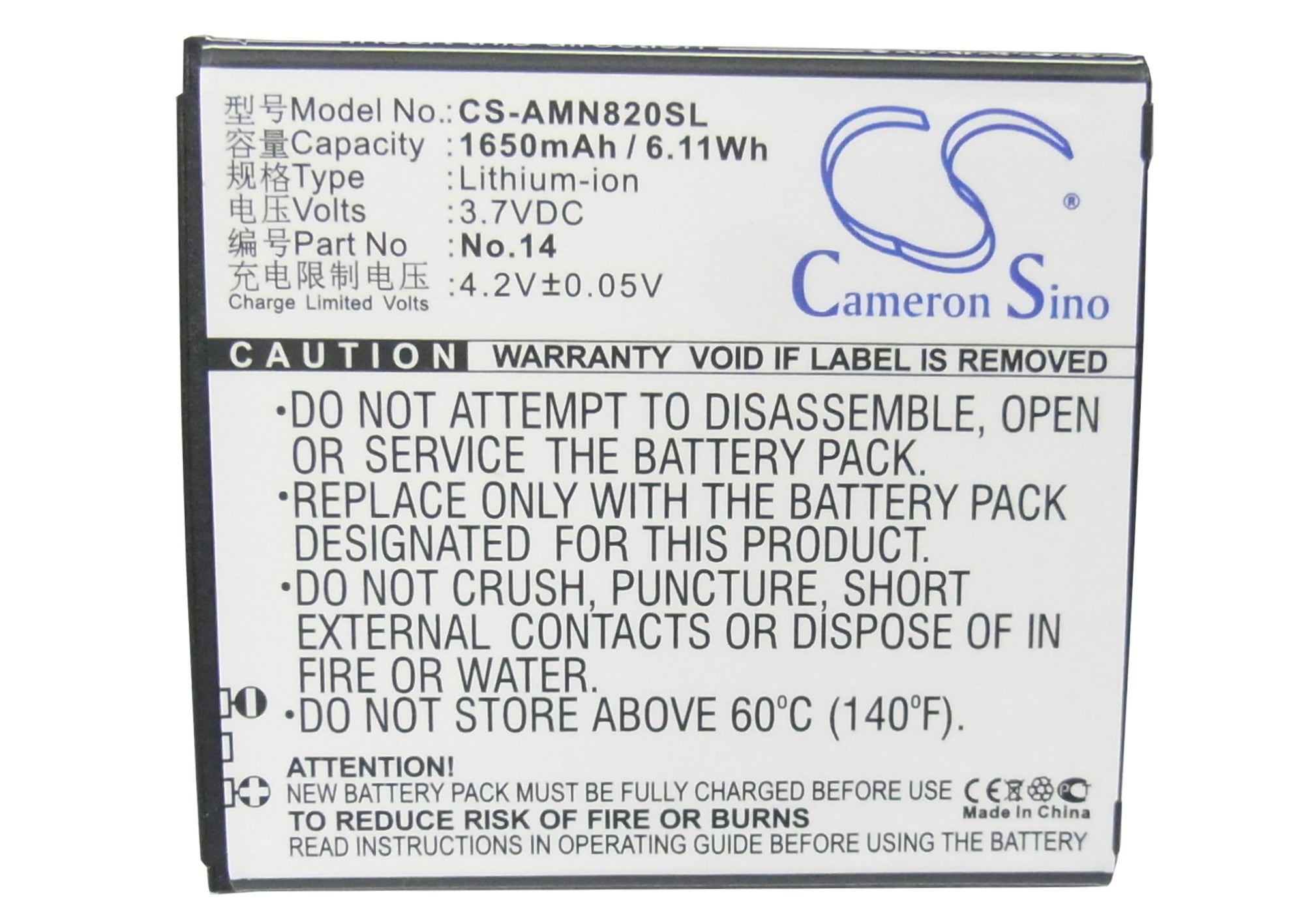 Battery for AMOI N818 No.14 3.7V Li-ion 1650mAh / 6.11Wh