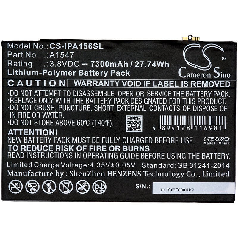 Battery for Apple MH312LL/A A1547 3.8V Li-Polymer 7300mAh / 27.74Wh