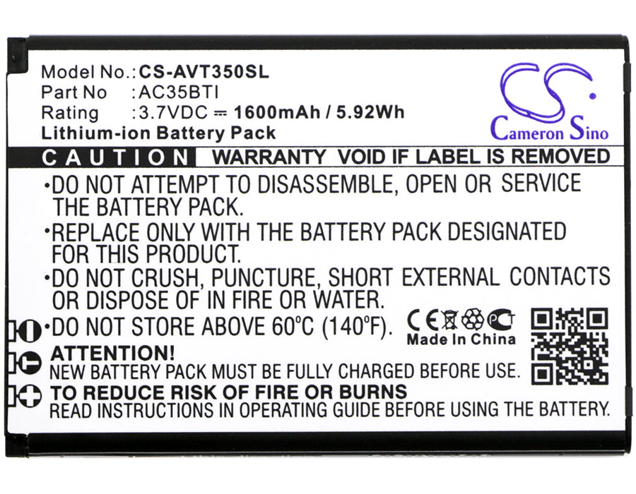 Battery for Archos 35b Titanium Dual SIM AC35BTI 3.7V Li-ion 1600mAh / 5.92Wh