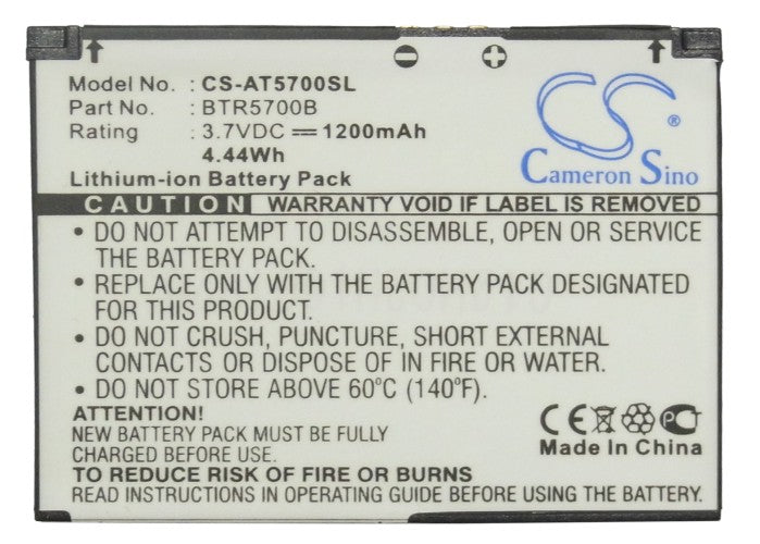 Battery for Audiovox SMT-5700 BTR5700B 3.7V Li-ion 1200mAh / 4.44Wh
