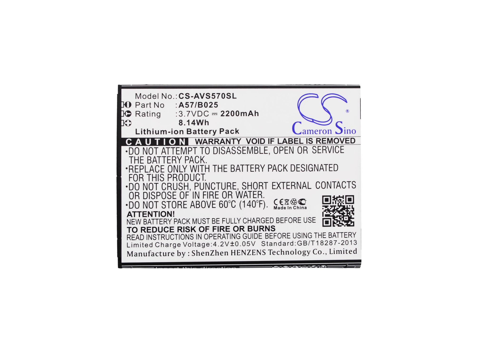 Battery for Avus A57 A57/B025 3.7V Li-ion 2200mAh / 8.14Wh