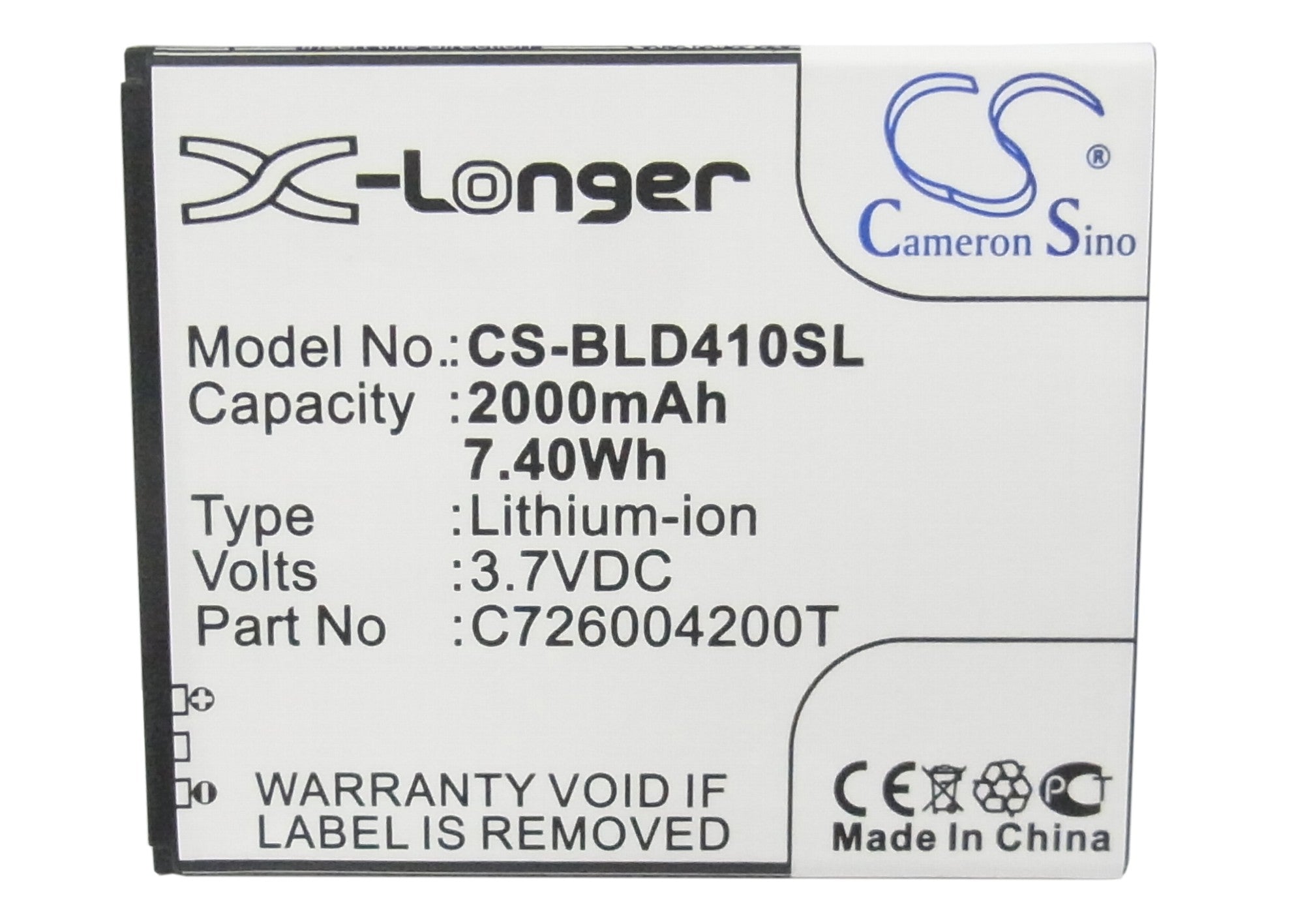 Battery for BLU D410 C726004200T 3.7V Li-ion 2000mAh / 7.40Wh