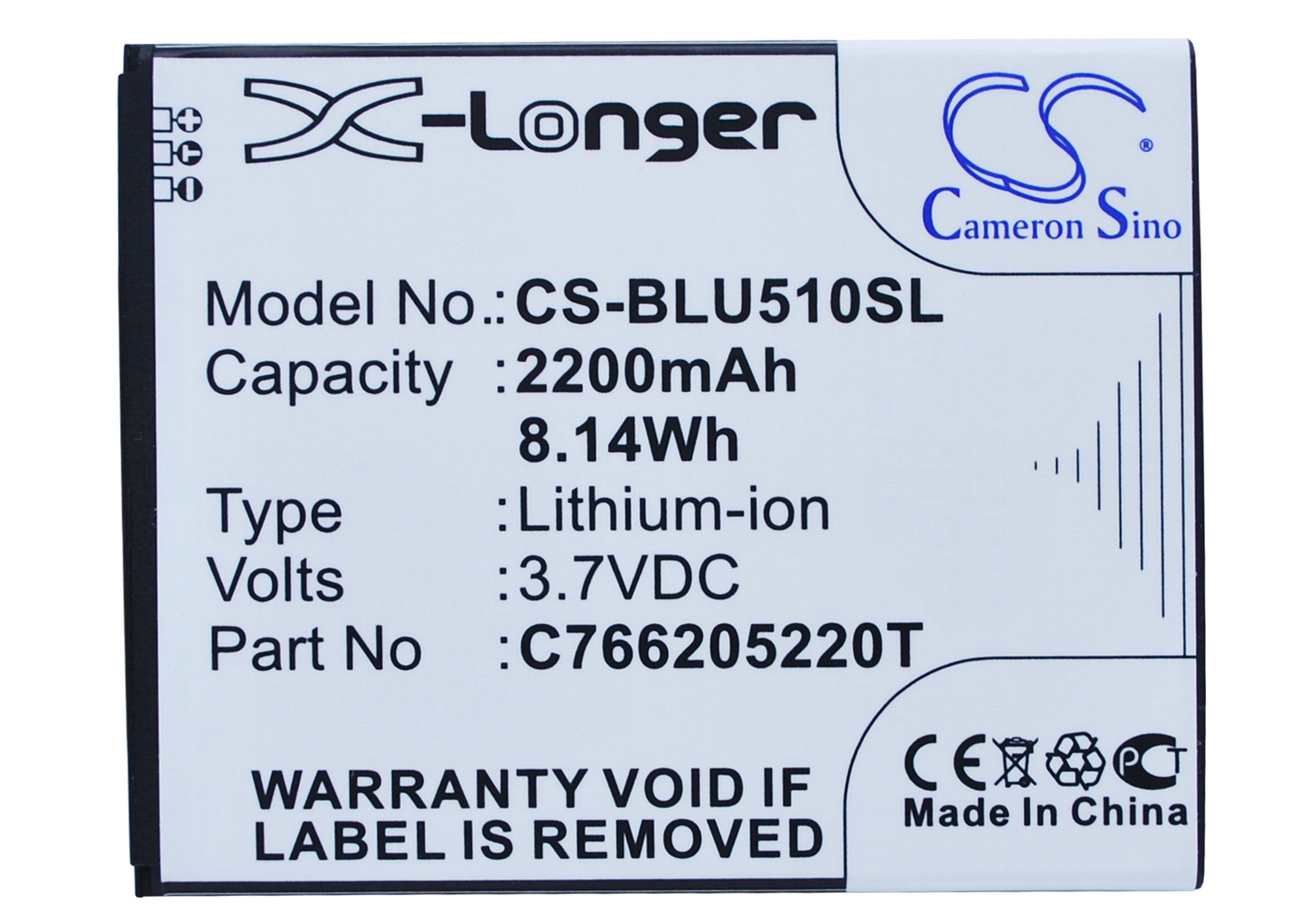 Battery for BLU D551A C766205220T 3.7V Li-ion 2200mAh / 8.14Wh
