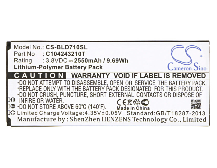 Battery for BLU D710 C104243210T 3.8V Li-Polymer 2550mAh / 9.69Wh