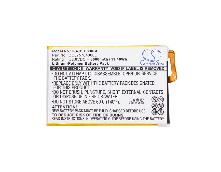 Battery for BLU D830U C875704300L 3.8V Li-Polymer 3000mAh / 11.40Wh