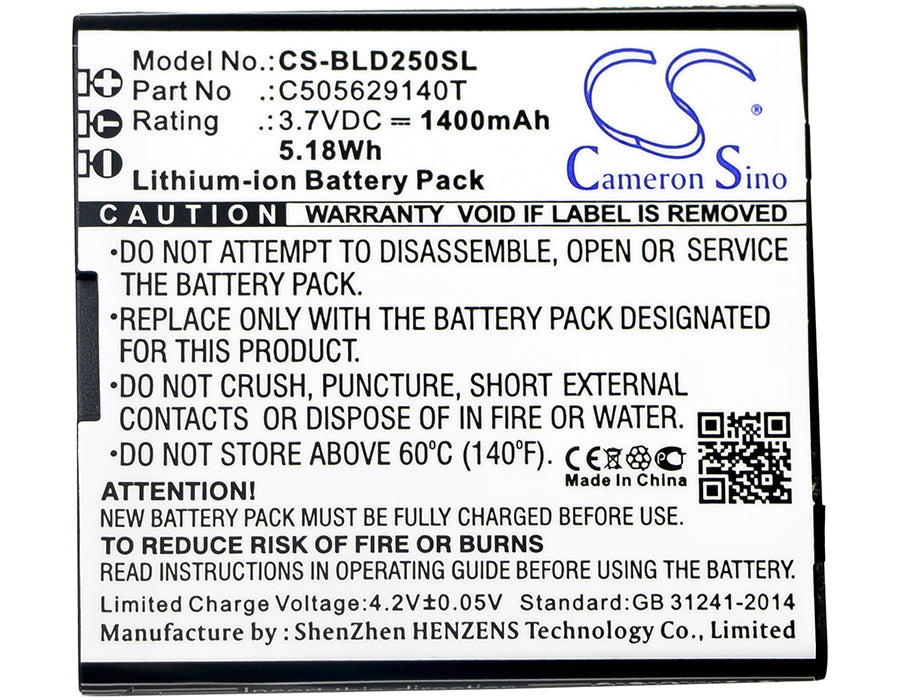 Battery for BLU Dash L3 C505629140I, C505629140L, C505629140T 3.7V Li-ion 1400mA
