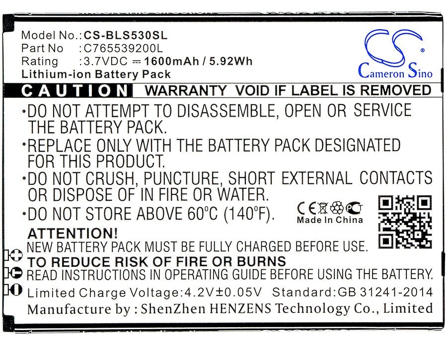 Battery for BLU Studio X8 HD C765539200L 3.7V Li-ion 1600mAh / 5.92Wh