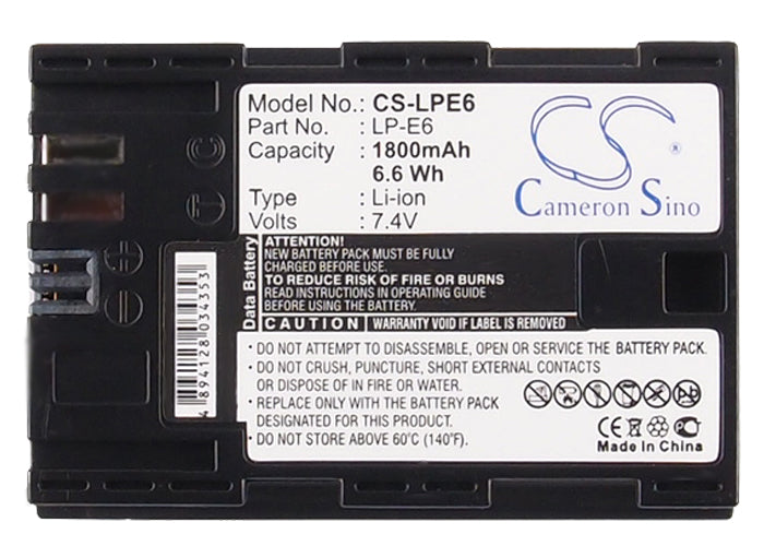 Battery for Canon EOS 6D LP-E6, LP-E6N 7.4V Li-ion 1800mAh / 13.32Wh