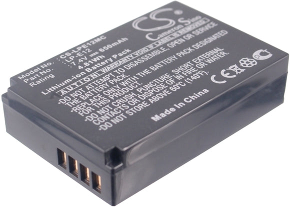 Battery for Canon PowerShot SX70 HS LP-E12 7.4V Li-ion 650mAh / 4.81Wh