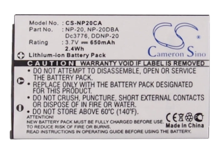 Battery for Casio Exilim EX-M2 NP-20, NP-20DBA 3.7V Li-ion 650mAh